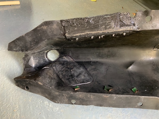 Ah ! That’s a good suggestion .. there are rivet heads showing through on the carpet side, but no signs of how this might have attached to the carpet .. would have been a good way to help the carpet (and or underlay) to conform to the profile of the tunnel.